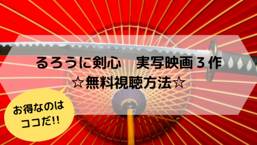 るろうに剣心の実写映画3作をすべて無料で見るにはどうしたらいいのか?現在は、るろうに剣心の見放題がある動画配信サービスがないんですよね・・でも!!実質無料で見れるサービスを発見しました^^この機会に、お得にチェックしちゃいましょう(^^)/